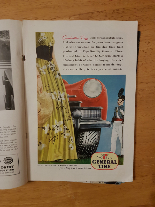 Reading material included a huge number of old National Geographic magazines. Most were from the 1970s to the 1990s but I did note an issue that dated back to 1946. Above is a General Tire ad from that issue.