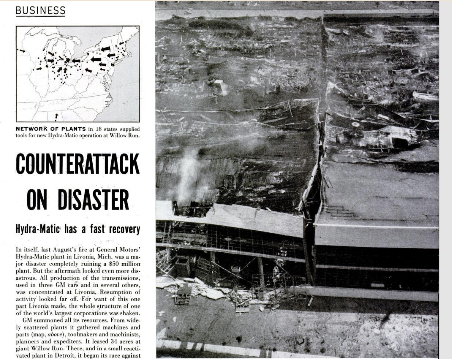 LIFE magazine, 2 November 1953, has a nice article about the Livonia fire and GM’s hustle to start up production again (Willow Run, etc.), including this nice photo of burned-out Livonia: https://books.google.com/books?id=IEgEAAAAMBAJ&pg=PA114&dq=%22victory+at+sea%22&hl=en&sa=X&ved=2ahUKEwjH1sCDqsiPAxV9tYkEHX5SDTMQ6AF6BAgGEAM#v=onepage&q=%22victory%20at%20sea%22&f=true
