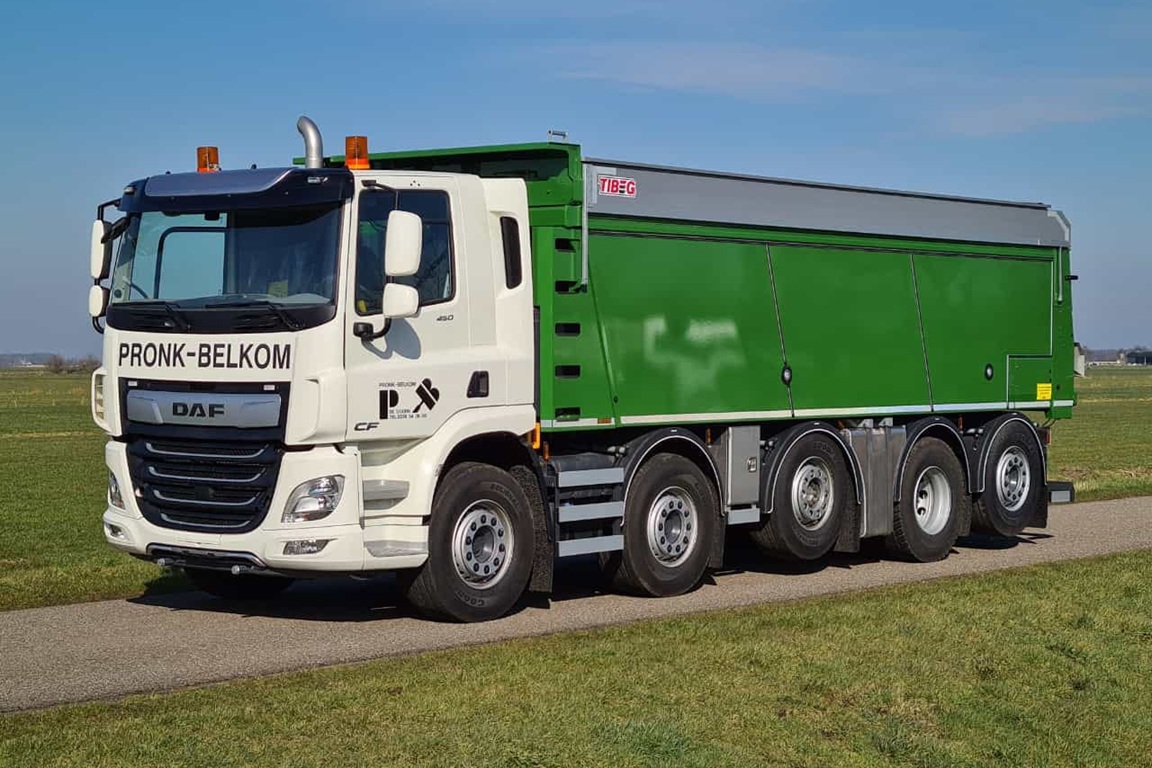 Speaking of super-heavy-duty, below a 49 tonnes DAF CF with a 10×2 drivetrain, so just one drive axle. The center axle is an aftermarket job by Veldhuizen Trucks.