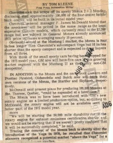 For the record, Monza was in development as early as 1970, long before Vega’s issues were widely known – it was intended to be an upscale offering on the H-body platform. I swapped a Buick 3.8l into my ’71 Vega notchback, which made it quick, while keeping Vega’s excellent handling qualities as it only added about 40lb. over the front wheels.